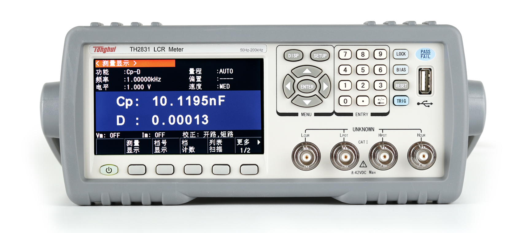 ■?TH283X系列是新一代低成本,高性能緊湊型LCR數字電橋,采用最新工藝和高密度電路設計,濃縮大型LCR測試儀的精華,緊湊,小巧.取消傳統機械電源開關,采用軟件控制電源開關.0.05%的基本精度和良好的測試穩定性可與高端機型媲美.配備4.3寸LCD顯示屏和全新升級的界面系統.美觀大方,操作簡便.儀器提供豐富的接口,兼容標準SCPI指令,可方便地組成各種測試系統,滿足檢驗,生產,科研的各種需求.