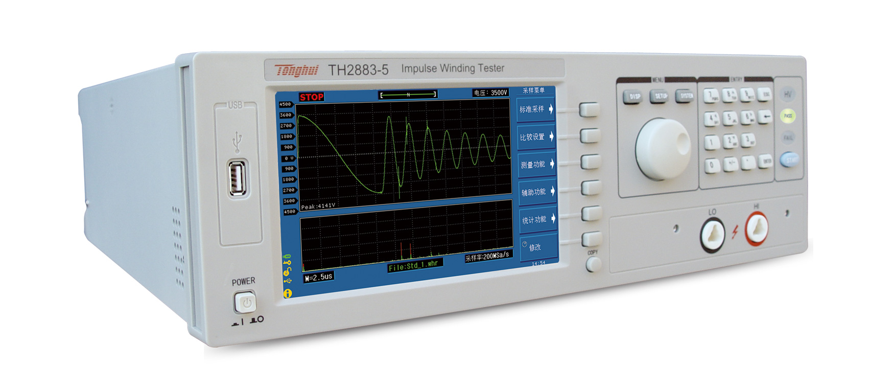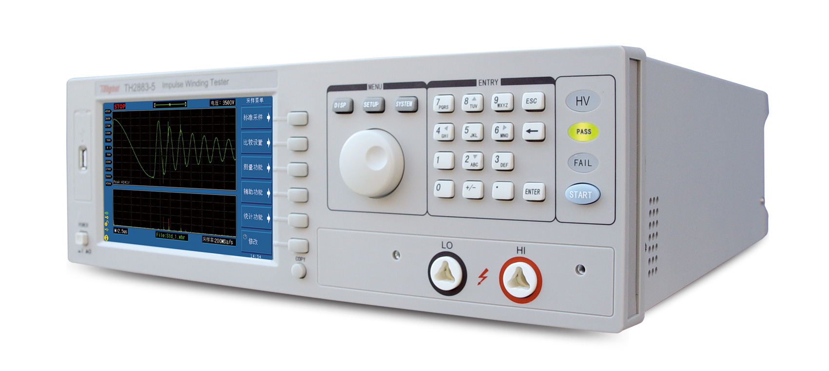 ? 沖電壓,是測試各種線圈的標配產品。TH2883-10具有最高10kV的脈沖 輸出電壓,可測試更高絕緣耐壓的匝間測試。