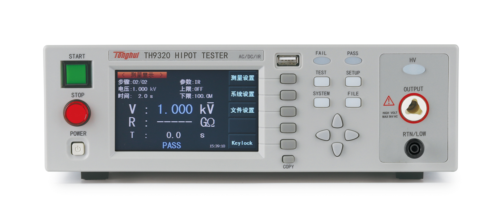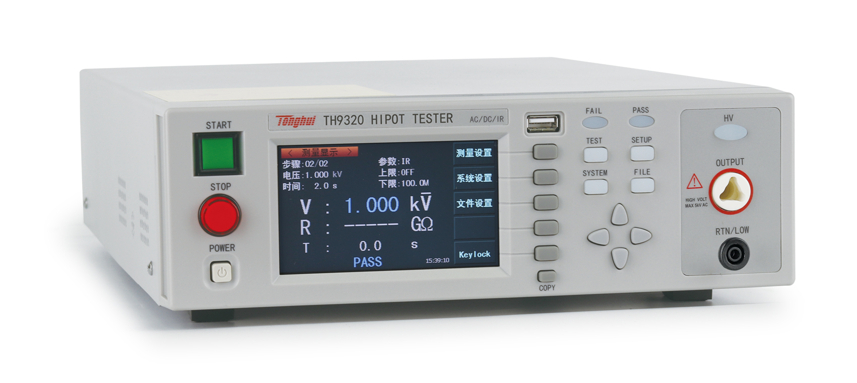 ■?TH9320交直流耐壓絕緣測試儀是一款小功率經濟型智能安規測試儀器。體積小、重量輕、外形美觀、操作簡便。TH9320產品可廣泛應用于家用電器、變壓器、電氣設備、元器件的安全性能檢查。