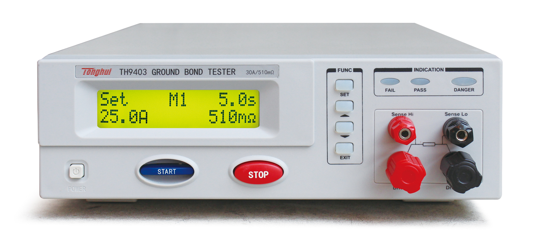 ■?TH9403型接地電阻測試儀是用來測量電氣設備內部的接地電阻,它所反映的是電氣設備的各處外露可導部分與電氣設備的總接地端子之間的(接觸)電阻。接地電阻測試儀為了消除接觸電阻對測試的影響,采用四段測量法,即在被測電氣的外露可導部分和總接地端子之間加上電流,然后再測量這兩端的電壓,算出其電阻值。本產品滿足GB4706.1-2005,GB9706.1-2007等國內外安規標準測試,符合JJG984-2004安規計量檢定規程要求。
