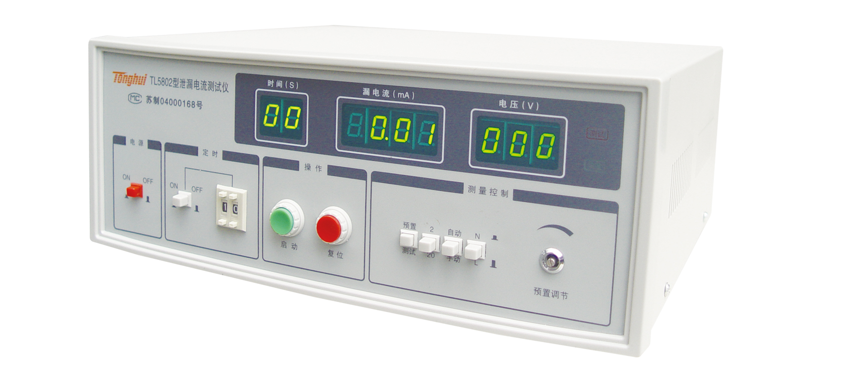 ■?TL5802泄漏電流測試儀是用于測量電器的工作電源(或其它電源)通過絕緣阻抗或分布參數阻抗產生的與工作無關的泄露電流。其輸入阻抗模擬人體阻抗,產品使用與家用電器和電機,電子儀器等其他電器產品的安全測試要求,也是實驗室,計量監督部門不可缺少的檢測設備。本產品滿足GB4706.1-2005,IEC60335.1-2004等國內外安規標準測試,符合JJG843-2007安規計量檢定規程要求。