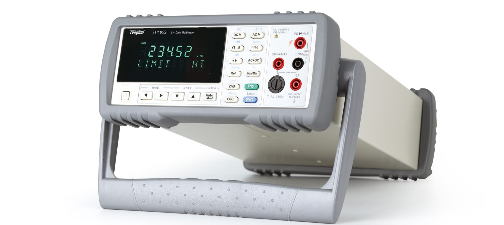 TH1952 五位半數(shù)字多用表簡介■ TH1952型5 1/2 位真有效值數(shù)字多用表是一種多功能、物美價廉的電壓/電流/電阻/電容測試儀。儀器提供120000字的最大讀數(shù),200次/秒最大ADC采樣速度,0.02%的直流電壓準(zhǔn)確度等一系列優(yōu)良的性能和經(jīng)濟(jì)的價格為廣大客戶提供最優(yōu)的選擇。TH1952提供高亮度VFD雙參數(shù)顯示器,可以同時測量/顯示交流/直流電壓或者電流、交流電壓/電流和頻率等參數(shù),不