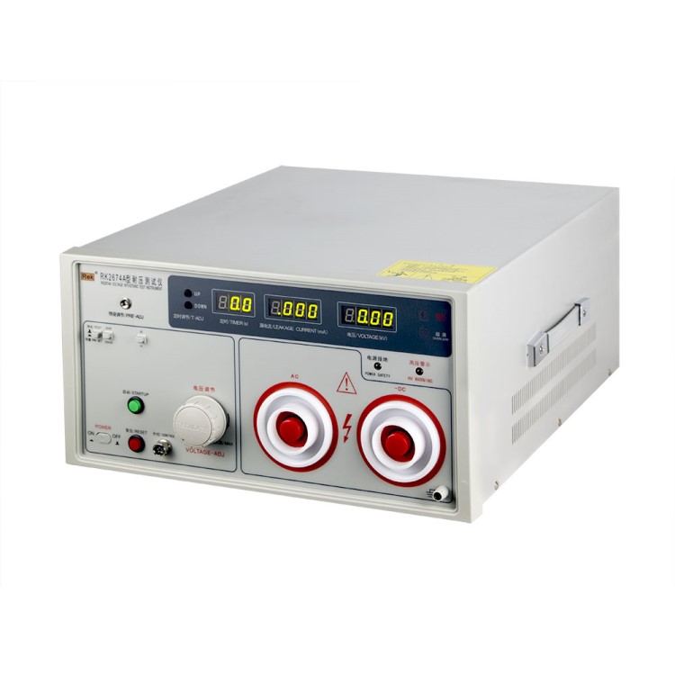 美瑞克RK2674系列耐壓測試儀是測量耐壓強度的儀器,可以直觀、準確、快速地測試各種被測對象的擊穿電壓、漏電流等電氣安全性能指標,并可以作為高壓源用來測試元器件和整機性能。