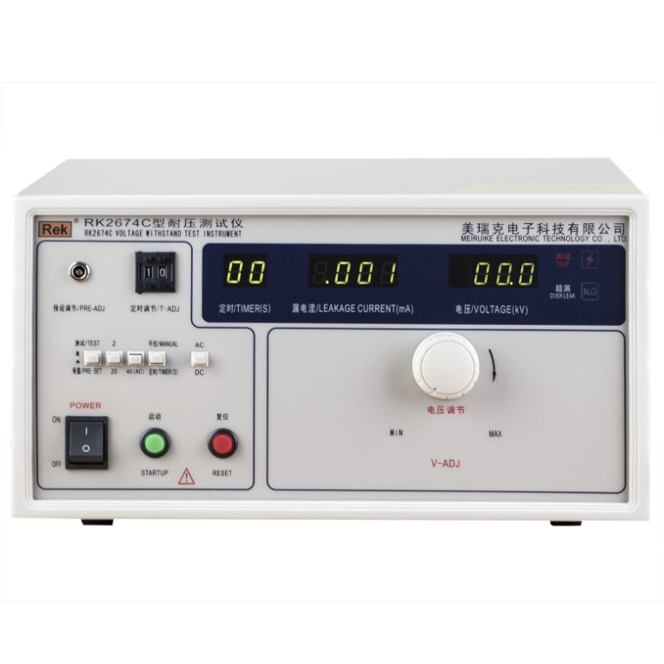 美瑞克RK2674系列耐壓測(cè)試儀是測(cè)量耐壓強(qiáng)度的儀器,可以直觀、準(zhǔn)確、快速地測(cè)試各種被測(cè)對(duì)象的擊穿電壓、漏電流等電氣安全性能指標(biāo),并可以作為高壓源用來(lái)測(cè)試元器件和整機(jī)性能。">