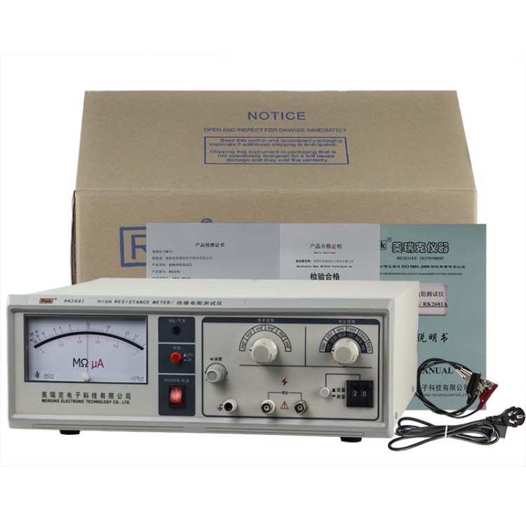 RK2681系列絕緣電阻測試儀是一種測量家用電器、照明電器、電動電熱器、電子元件、介質材料、整機等絕緣性能的測量儀器。測試速度快、穩定性好、操作方便、并具有不良判別的功能。