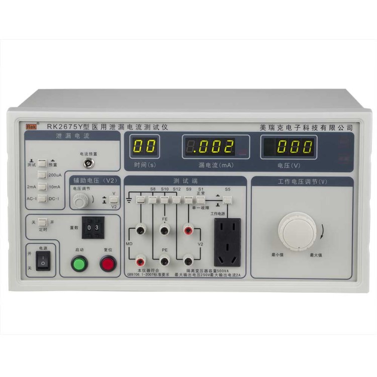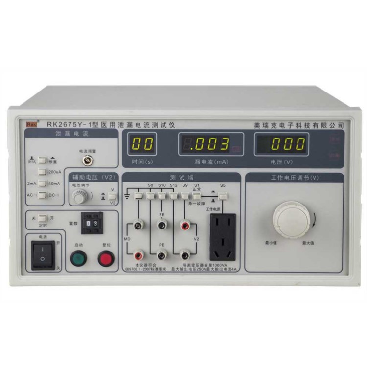 RK2675Y系列醫(yī)用泄漏電流測試儀用于測量醫(yī)用電氣設(shè)備的連續(xù)漏電流和患者輔助電流的檢測試驗(yàn)設(shè)備。
