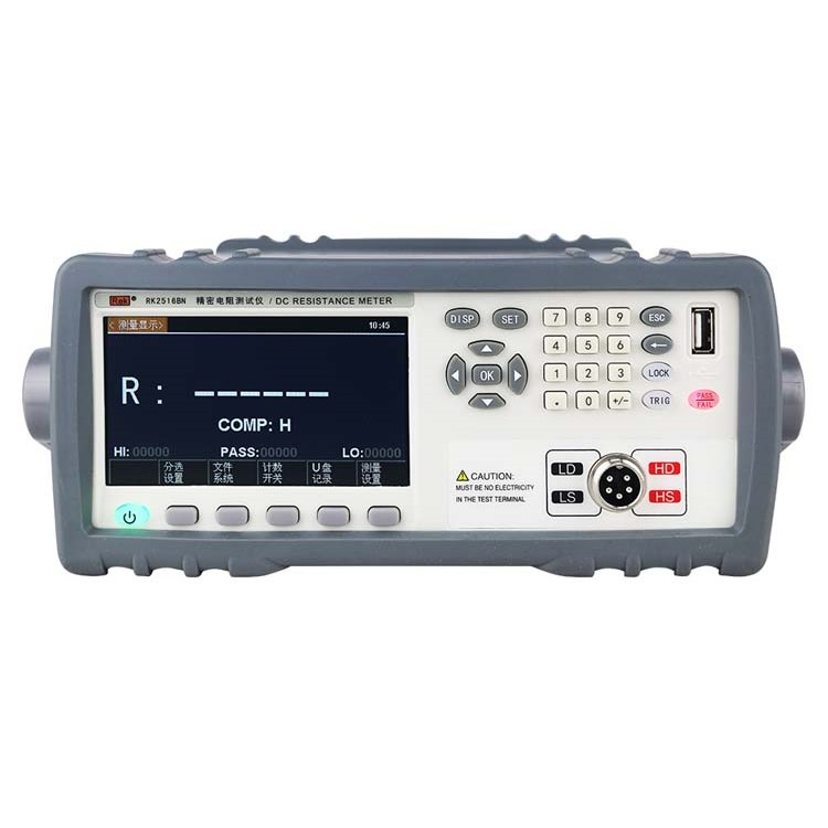 RK25XX直流低電阻測試儀采用當前主流的32bits CPU和高密度SMD貼裝工藝、24位色4.3寸IPS彩色LCD顯示以及上下左右功能鍵,界面清爽、操作便捷;其使用于繼電器接觸電阻、接插件接插電阻、導線電阻、印制板線路及焊孔電阻等;溫度補償能免除環境溫度對測試工作的影響;RK25XX系列提供了多種接口功能,可方便的與PC進行數據通訊和遠程控制。
